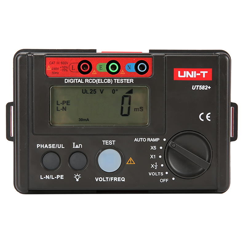 Измеритель для тестирования устройств защиты от утечки тока UT582+ управляется интеллектуальным микропроцессорным чипом, что обеспечивает высокую точность, надежность и стабильность работы. Устройство оснащено функцией AUTO RAMP, позволяющей одновременно тестировать время срабатывания при сбое и срабатывающий ток.