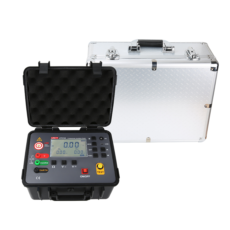 Измеритель изоляционного сопротивления (мегаомметр) предназначен для проверки изоляционного сопротивления. Модель UT515A оснащена такими функциями, как большой LCD-дисплей с подсветкой, хранение данных, просмотр сохраненных данных, сигнализация, автоматическое отключение и другие. Помимо этого, она поддерживает измерение переменного и постоянного напряжения, а также функцию определения коэффициента усвоения (DAR) и полярного индекса (PI).