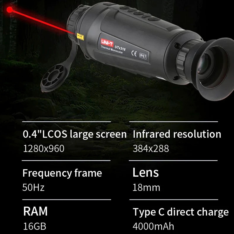 UTx318 — это портативный, инфракрасный инфракрасный телескоп с оптическим изображением и дальним обнаружения, диапазон кадра 50Hz, который позволяет наблюдать за передвижением объектов, которые больше не катон, лазерные индикаторы, горячие точки, точное “местоположение”, инфракрасное разрешение 384×288 и подключение к внешнему экрану, защита фюзеляжа IP67 от пыли, Большое “оружие” для наблюдения на открытом воздухе, кемпинга, поиска, безопасности, морских путешествий и т.д.