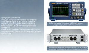 Рекомендации по выбору: Оцените самую высокочастотную составляющую или самое быстрое время нарастания тестируемого сигнала. При выборе осциллографа полоса пропускания должна быть как минимум в 3-5 раз больше самой высокой частоты тестируемого сигнала. Для радиочастотных приложений частотный диапазон генератора и анализатора сигналов должен полностью охватывать тестируемый диапазон частот.